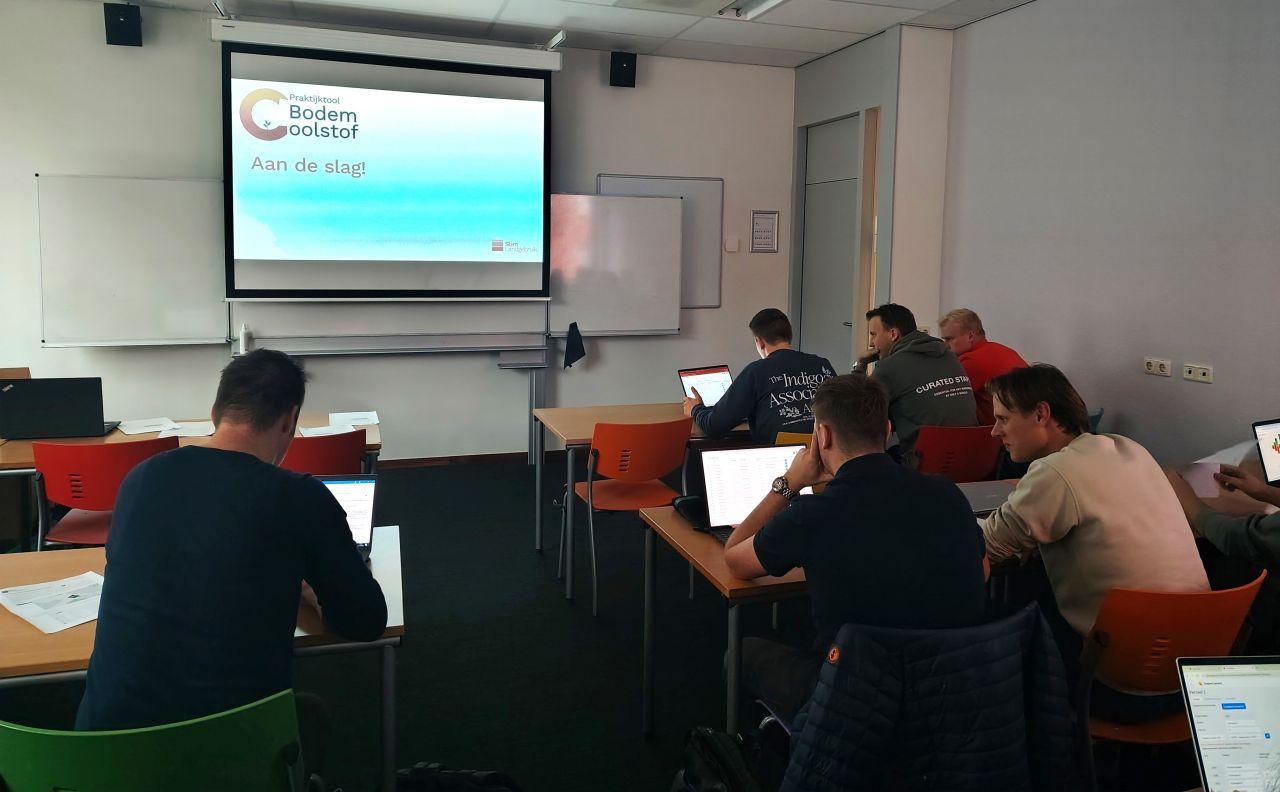 Daarna werd met behulp van de Praktijktool BodemCoolstof inzichtelijk gemaakt hoe deze kennis toegepast kan worden in de praktijk. Met de tool wordt op bedrijfsniveau koolstofvastlegging gemodelleerd op basis van o.a. het bouwplan, bemesting en extra maatregelen om koolstof vast te leggen.